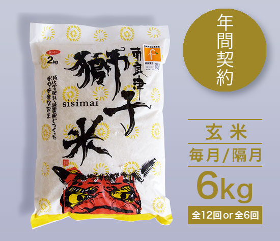 【年間契約】特別栽培米【獅子米】玄米6kg[毎月/隔月]